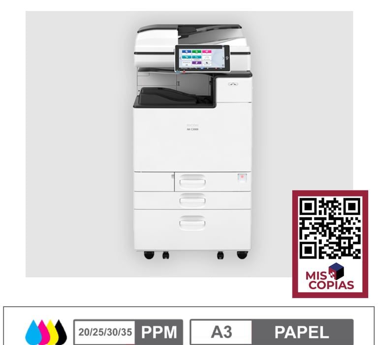 • Multifuncional (Asistente inteligente de oficina) a color: Copiadora, lmpresora, Escaner, Servidor de Documentos y Fax (opcional).