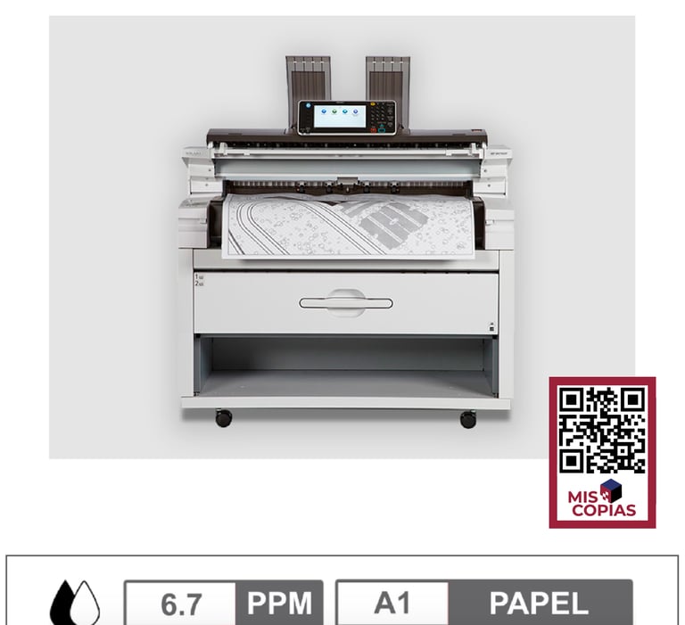 • Velocidad de 6,7 copias por minuto (en formato A1).